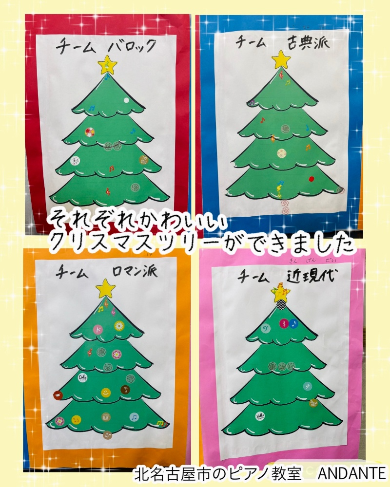 クリスマスツリーを飾ろう🎄⭐️12月のことですが、最後で通せるようになった生徒さんからクリスマスツリーにオーナメントとしてシールを貼りました🟡今回の発表会は”時代を知ること”を意識して進めていますので時代ごとに分けて作りました😊生徒さんの前後は時間を空けているため他の生徒さんに会うことはないですが少しの工夫で仲間意識ができているようです🎶月曜、火曜の生徒さんたち、みんなお休み中も頑張っていました‼️明日からも楽しみにしています!